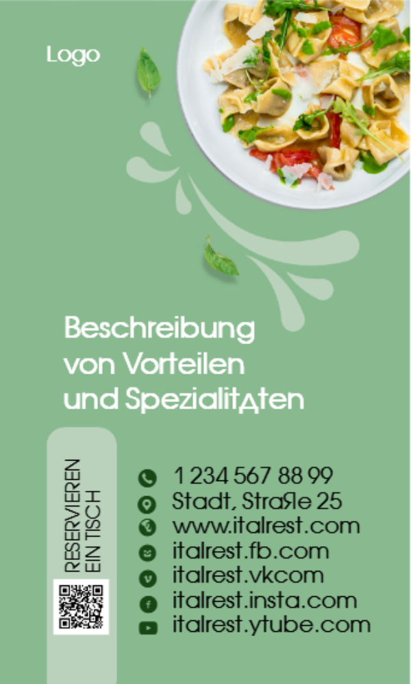 Vorlage Miniflaer. Titelleiste: Mini-Flayer-Vorlage für ein italienisches Restaurant. Thema: Cafés, Bars, Restaurants
