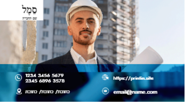 תבנית כרטיס ביקור. כותרת: כרטיס ביקור של חברת בנייה. נושא: בניה, שיפוץ ודקורציה