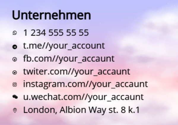 Sammlung von Vorlagen A5. Thema: Geschäfts- und Geschäftsdienstleistungen. Seite - 1