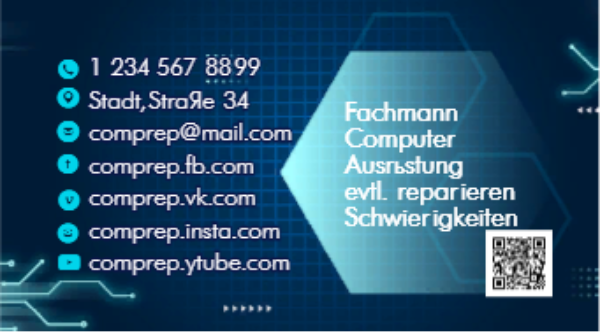 Vorlage Visitenkarte. Titelleiste: Visitenkartenvorlage für die Reparatur von Computergeräten. Thema: Informationstechnologie, Computer, IT