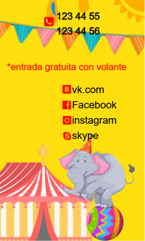 Plantilla Miniflayer. Título: circo minivolador. Temático: Vacaciones, entretenimiento y ocio