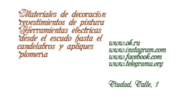 • www.ok.ru www.instagram.com www.facebook.com www.telegrama.org Ciudad, Calle, 1