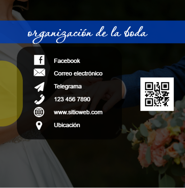 Plantilla A6. Título: Tarjeta de visita de organización de bodas. Temático: Vacaciones, entretenimiento y ocio