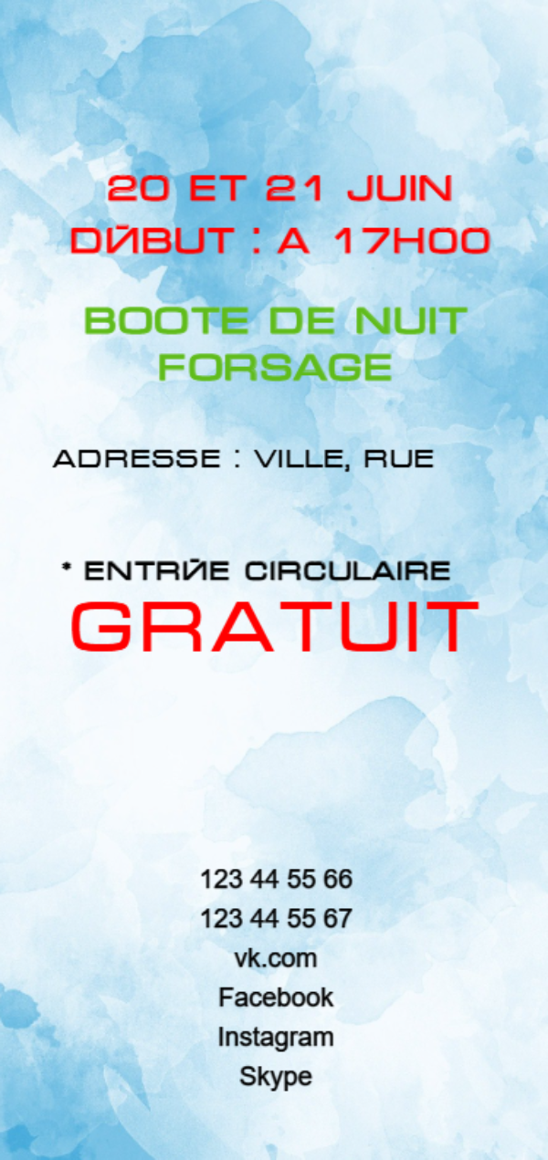Collection de modèles A4. Thème: Vacances, animations et loisirs. Page Suivante - 1