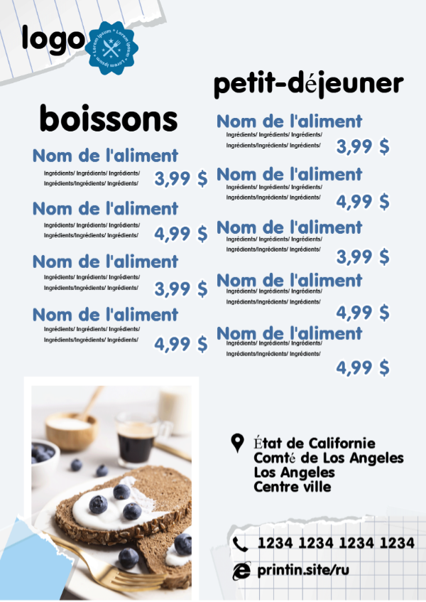 Collection de modèles A4. Thème: Cafés, bars, restaurants. Page Suivante - 1
