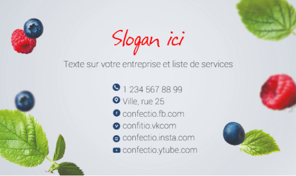Collection de modèles Carte de visite. Thème: Vacances, animations et loisirs. Page Suivante - 1