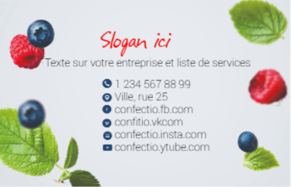 Collection de modèles Carte de visite. Thème: Vacances, animations et loisirs. Page Suivante - 1