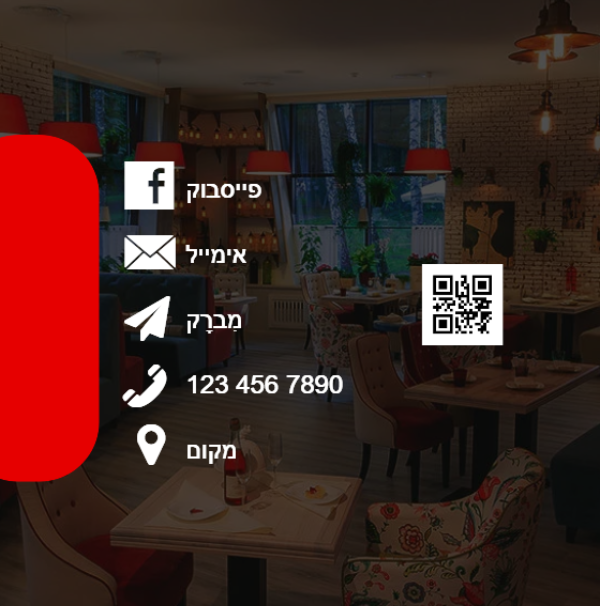 תבנית A6. כותרת: כרטיס ביקור למסעדה. נושא: בתי קפה, ברים, מסעדות