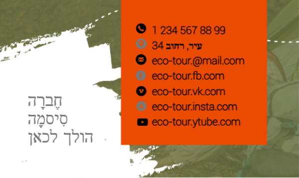 אוסף של תבניות כרטיס ביקור. נושא: טיול ותיירות. עמוד - 1