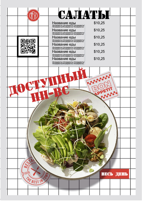 Коллекция шаблонов A4. Тема: Кафе, бары, рестораны. Страница - 1