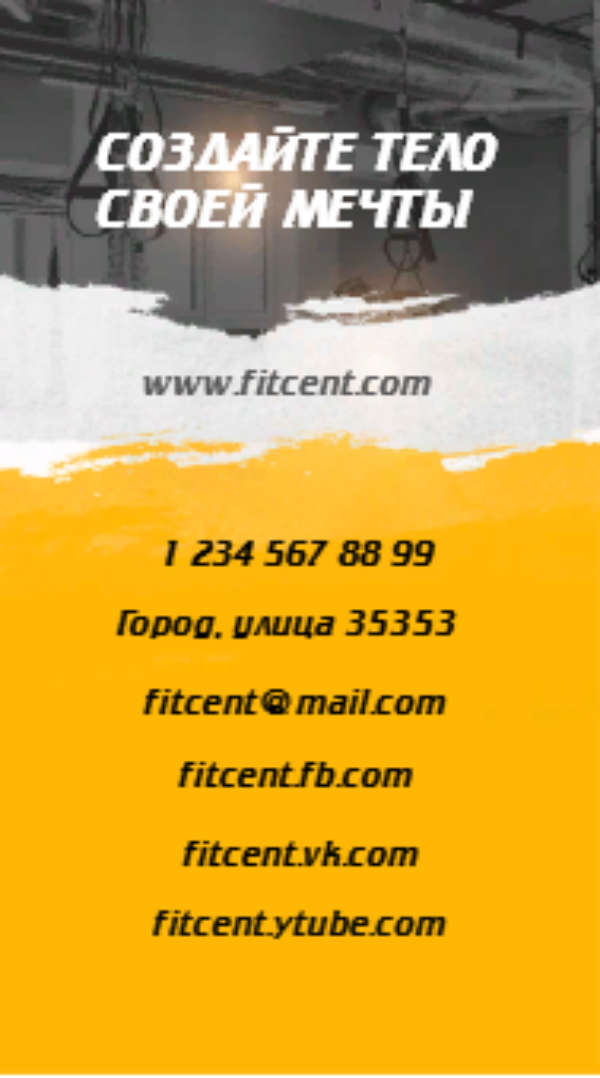 Шаблон Визитка. Название: Шаблон визитной карточки фитнес-центра евро. Тема: Спорт, фитнес, йога