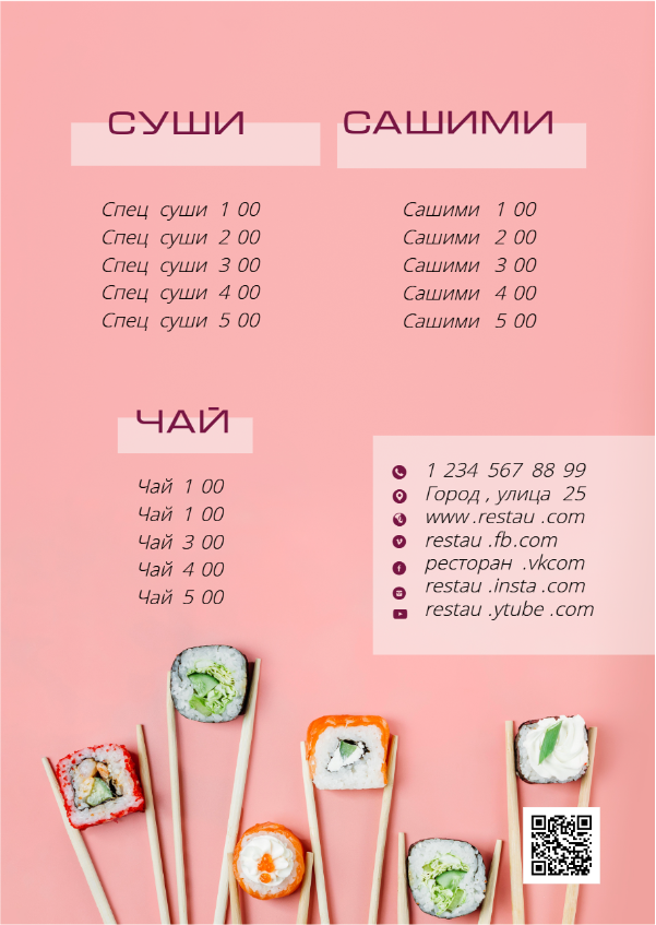 Коллекция шаблонов A6. Тема: Кафе, бары, рестораны. Страница - 1