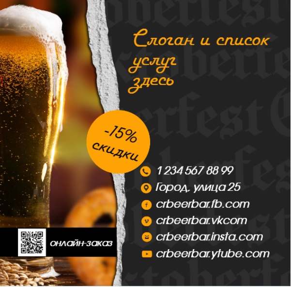 Коллекция шаблонов A6. Тема: Кафе, бары, рестораны. Страница - 1