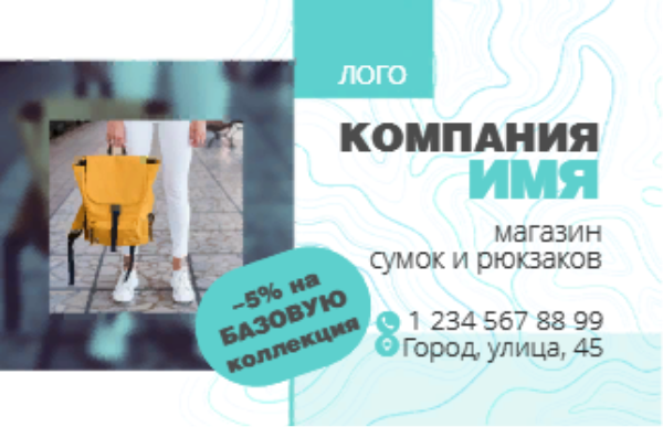 Шаблон визитной карточки магазина сумок и рюкзаков евро